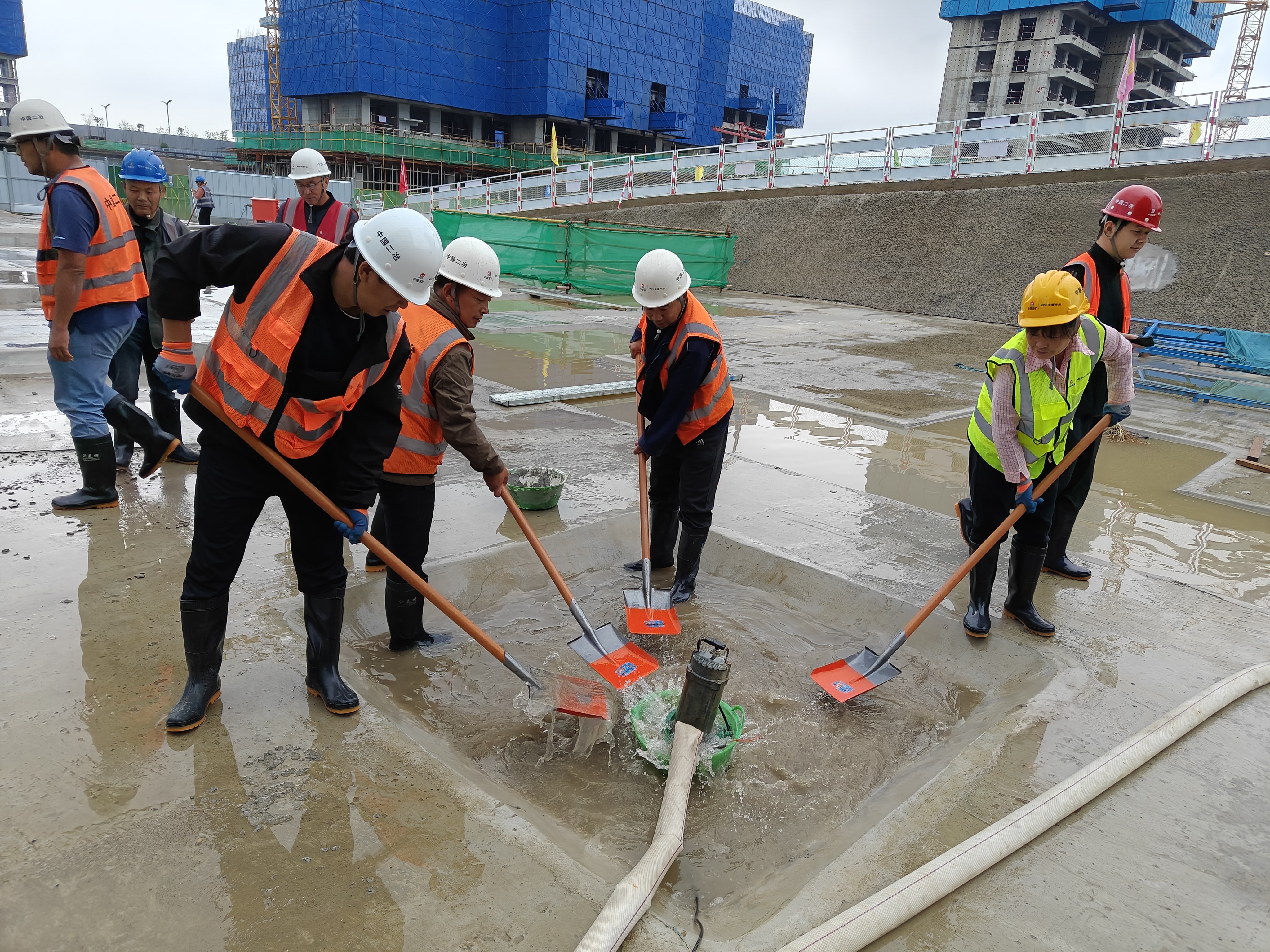 思想上松一寸,行動上就差一尺。項目部堅持“防汛培訓要經常、防汛演練要真實”的原則,通過LED顯示屏、宣傳欄、橫幅、班前教育、安全手冊等形式,開展全覆蓋、多頻次防汛知識宣傳,提高一線施工人員對災害天氣的識別能力、對突發情況的應急判斷能力,特別針對夜間作業人員、基坑作業人員和特種作業人員,開展“點對點”教育培訓,強化臨災自救和互救意識,確保突發狀況下 “響應快、處置準、損失小”。