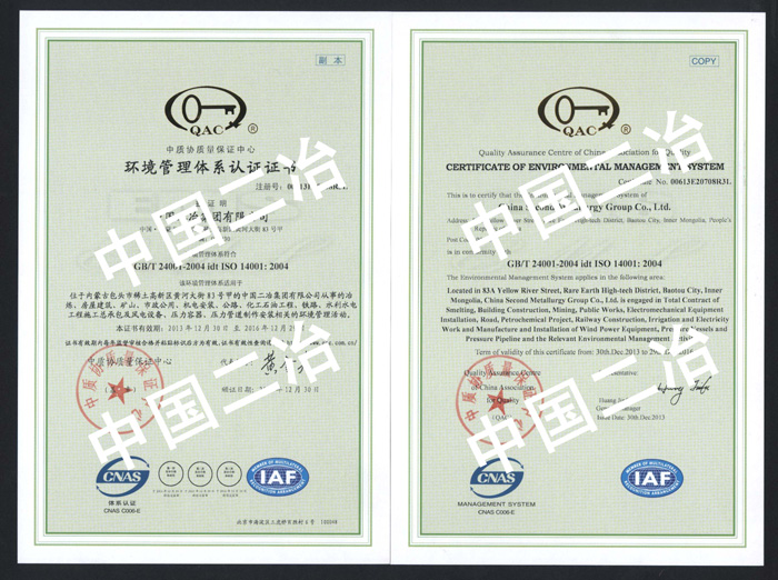 質量、職業健康安全、環境管理體系認證證書