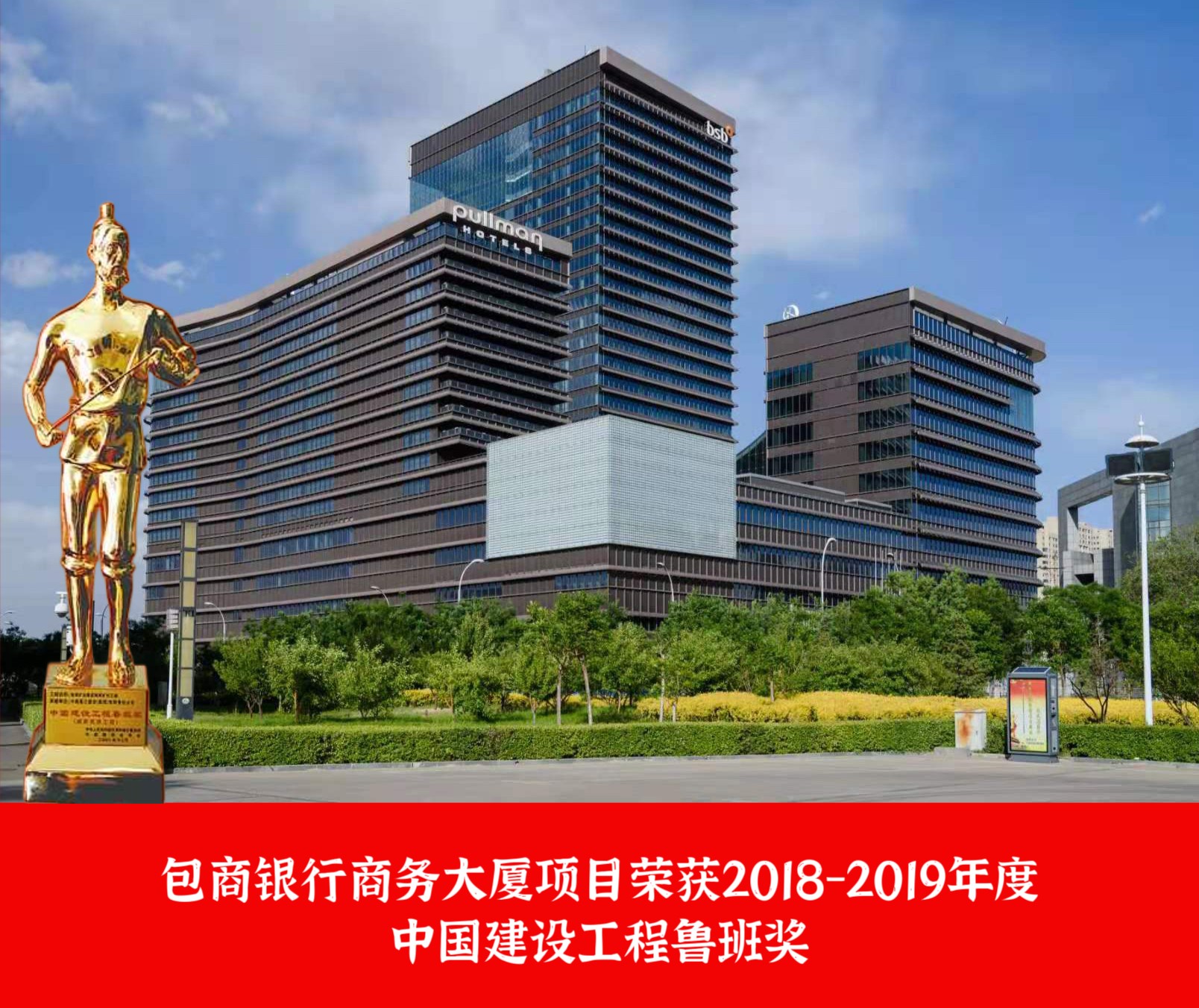 包商銀行商務大廈項目是內蒙古重點金融大廈工程包頭市難度最大的超級工程。工程榮獲第十三屆第一批中國鋼結構金獎工程,獲得2018-2019年度中國建設工程魯班獎