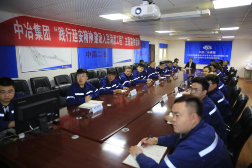 在學黨史、悟思想環節,中國二冶建設者們在青年黨員代表的帶領下以鏗鏘之聲重溫入黨誓詞,表達了黨員們弘揚革命精神、傳承紅色基因的堅定決心;向黨員突擊隊和青年突擊隊授旗,突擊隊代表表達了“堅決聽黨指揮,踐行初心使命,認真履職盡責,勇于擔當作為”的決心;路橋分公司黨委為該項目黨支部贈送黨史學習教育書籍,組織全體管理人員在“重溫延安精神 守初心擔使命”條幅上簽名請戰,力爭通過學好黨史,引導廣大黨員用黨的奮斗歷程和偉大成就鼓舞斗志,用黨的光榮傳統和優良作風堅定信念,切實把學習成效轉化為精神動力,以優異成績迎接建黨100周年。隨后,路橋分公司總經理郝海飛結合實際,為全體黨員講述了一堂《讓延安精神在新時代綻放》主題黨課,集體觀看了《延安精神 永放光芒》專題片,黨員手寫承諾卡,使全體黨員干部及職工群眾進一步深入學習領會“延安精神”的精髓要義。