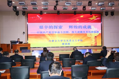 在集中學(xué)習(xí)環(huán)節(jié),公司黨委特邀請(qǐng)了內(nèi)蒙古大學(xué)馬克思主義學(xué)院副院長(zhǎng)、傅鎖根教授給大家進(jìn)行了《艱辛的探索 輝煌的成就—中國(guó)共產(chǎn)黨百年奮斗歷程、偉大成就及其歷史啟迪》專(zhuān)題黨史講座,傅院長(zhǎng)從“中國(guó)共產(chǎn)黨歷史發(fā)展的主題主線、主流本質(zhì);中國(guó)共產(chǎn)黨書(shū)寫(xiě)的偉大成就;中國(guó)共產(chǎn)黨奮斗歷程的歷史啟示”等三個(gè)方面,用生動(dòng)的語(yǔ)言、豐富的案例、詳實(shí)的資料,科學(xué)系統(tǒng)地解讀了中國(guó)共產(chǎn)黨的百年奮斗歷程,對(duì)公司廣大黨員干部深刻學(xué)習(xí)領(lǐng)會(huì)、全面準(zhǔn)確把握中國(guó)共產(chǎn)黨的百年奮斗歷程,具有很強(qiáng)的針對(duì)性和指導(dǎo)性。整場(chǎng)報(bào)告主題鮮明、深入淺出、內(nèi)涵豐富、分析透徹、見(jiàn)解深刻,既有透徹的理論闡述,又有豐富生動(dòng)的實(shí)例;既有理論高度又有現(xiàn)實(shí)針對(duì)性,闡釋了中國(guó)共產(chǎn)黨的百年奮斗歷程的精髓,大家受益匪淺。