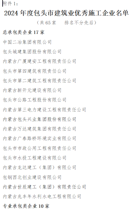 中國二冶獲評“2024年度包頭市建筑業優秀施工企業”